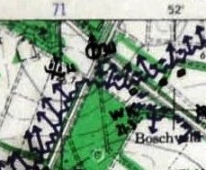Het vroegere voetbalveld ligt precies op de locatie waar een kilometerslange verbindingsloopgraaf vanuit Oosterbeek vlak voor de Amsterdamseweg afboog naar Arnhem. Dat is goed te zien op een defence overprint van 21 maart 1945.